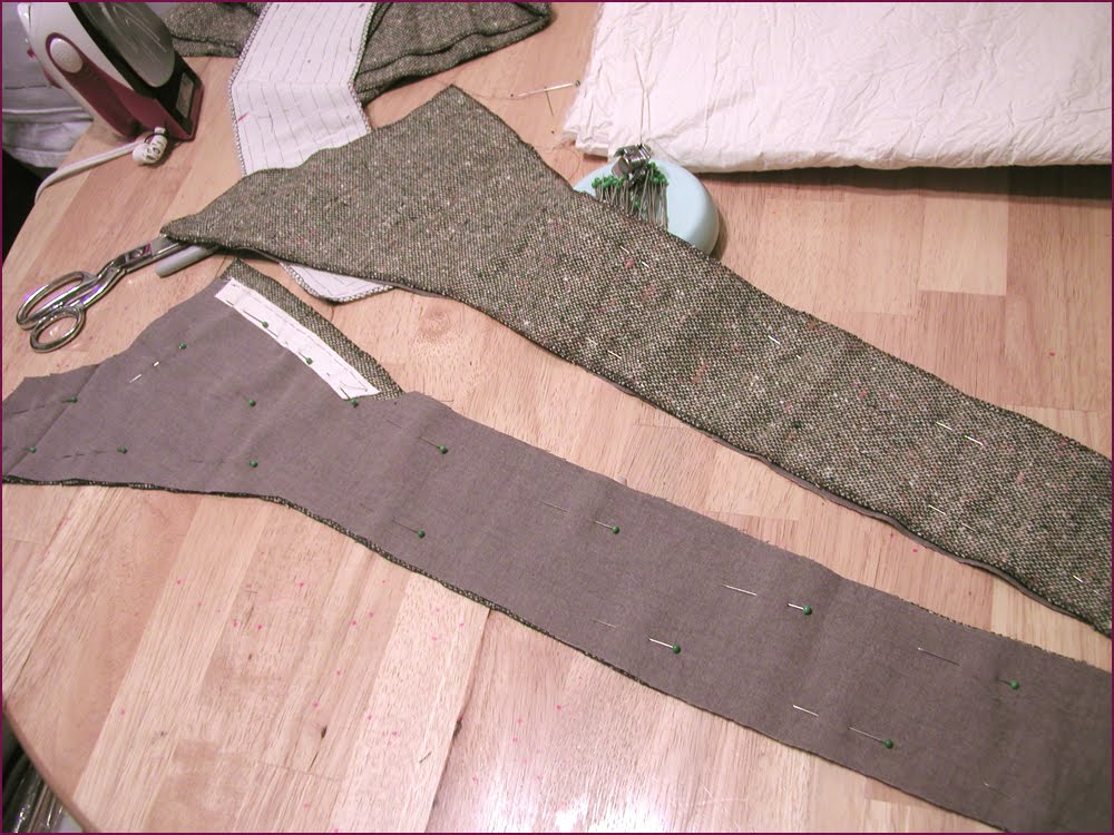 The facings for the lapels I'm using a nice cotton to stabilize the bias cut of the fabric. I have to practice on my rolling for when I pin the fabric and baste it.
